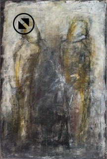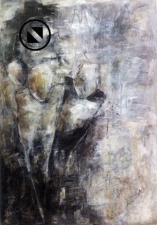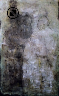 Acryl, Kreide, Kohle, Papier auf Leinwand,
