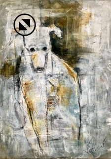Acryl, Kreide, Kohle, Papier auf Leinwand,