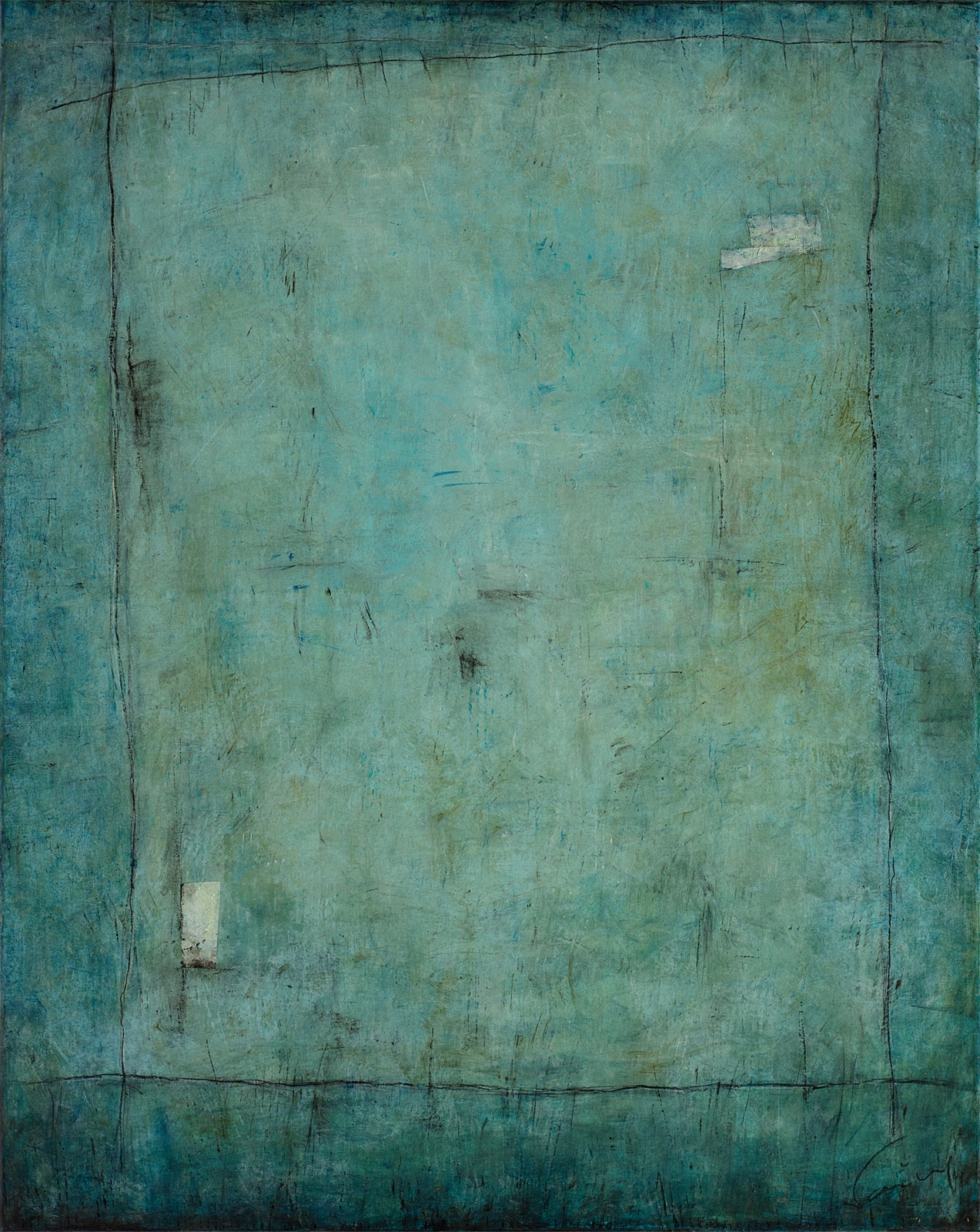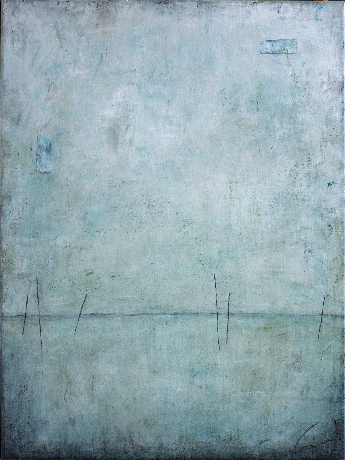 Acryl, Pigment, Kreide, Kohle, Papier auf Leinwand,